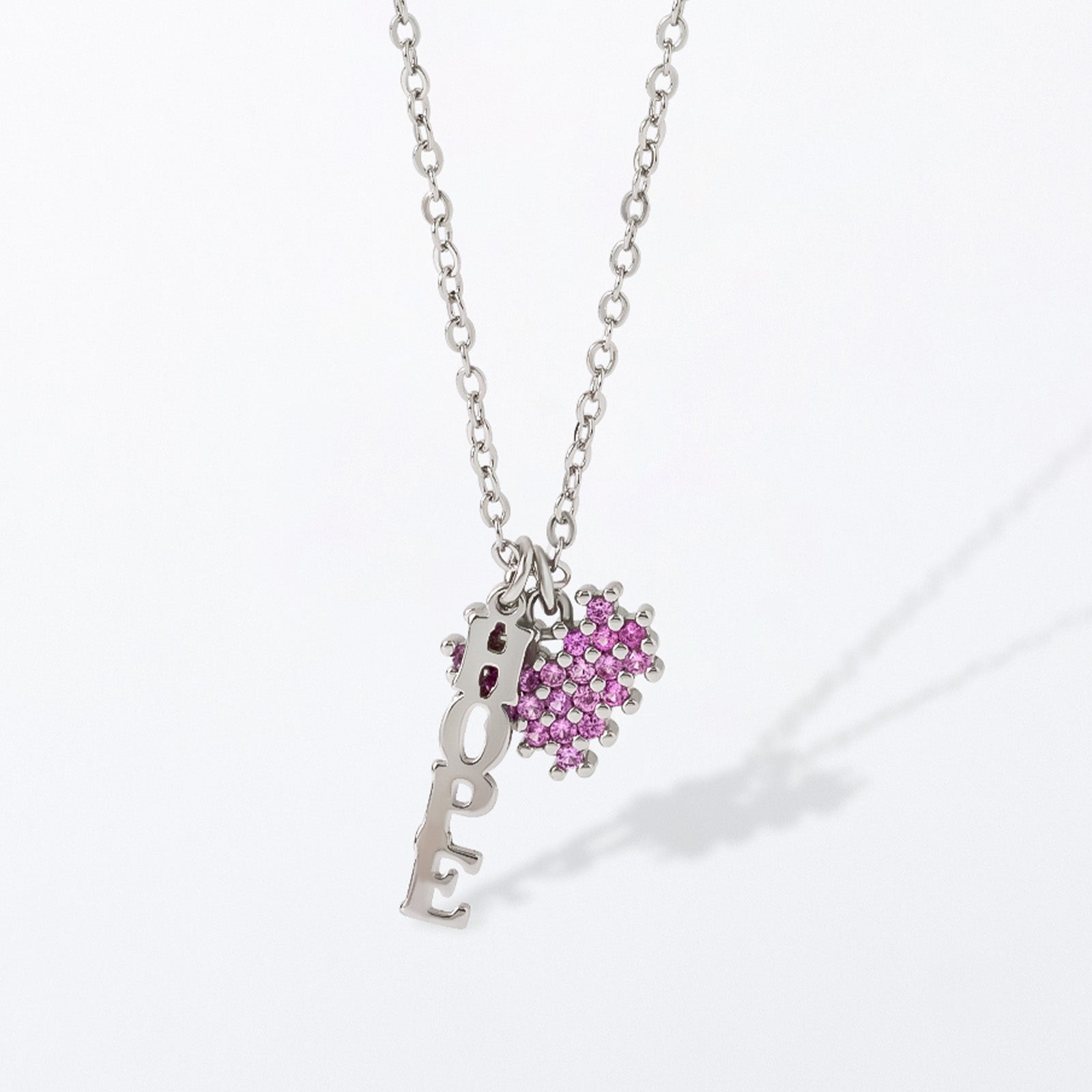 Designed to inspire positivity and perseverance, keep hope alive with our Hope Breast Cancer Awareness Necklace. This meaningful necklace is perfect for daily wear or as a thoughtful gift. Proudly advocate for Breast Cancer Awareness while supporting the fighters, admiring the survivors, and honoring the taken.