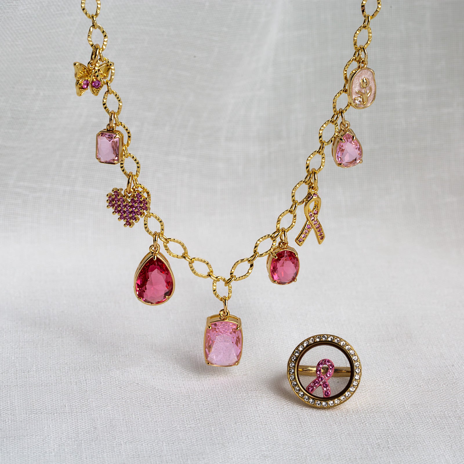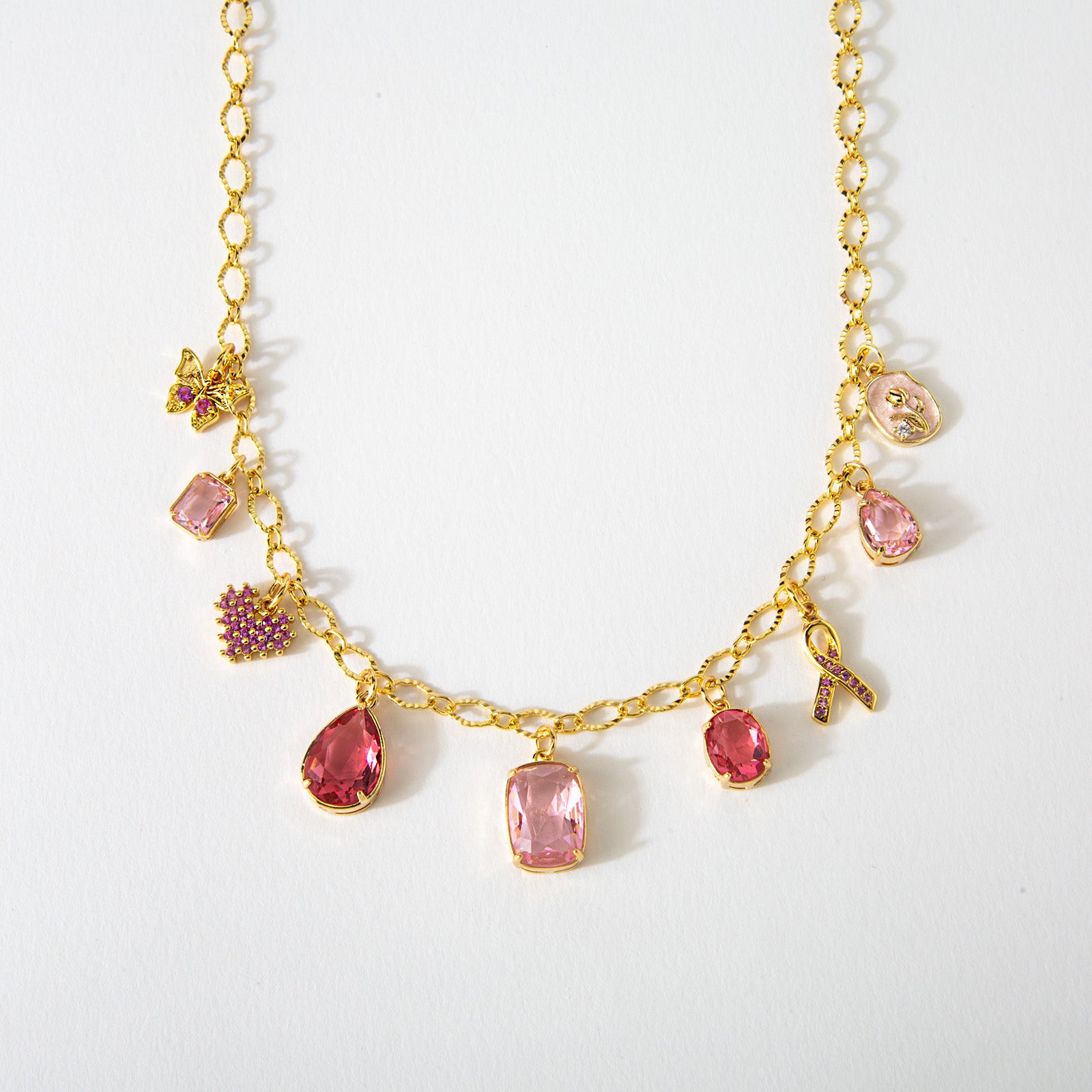 The Strong in Pink Charm Necklace is made to reflect courage and the power of community through every step of the journey. This meaningful 17–19" charm necklace is a symbol of strength, unity, and unwavering hope for those impacted by breast cancer. Celebrate survivors, support fighters, and carry their stories close with this Breast Cancer Awareness Necklace.