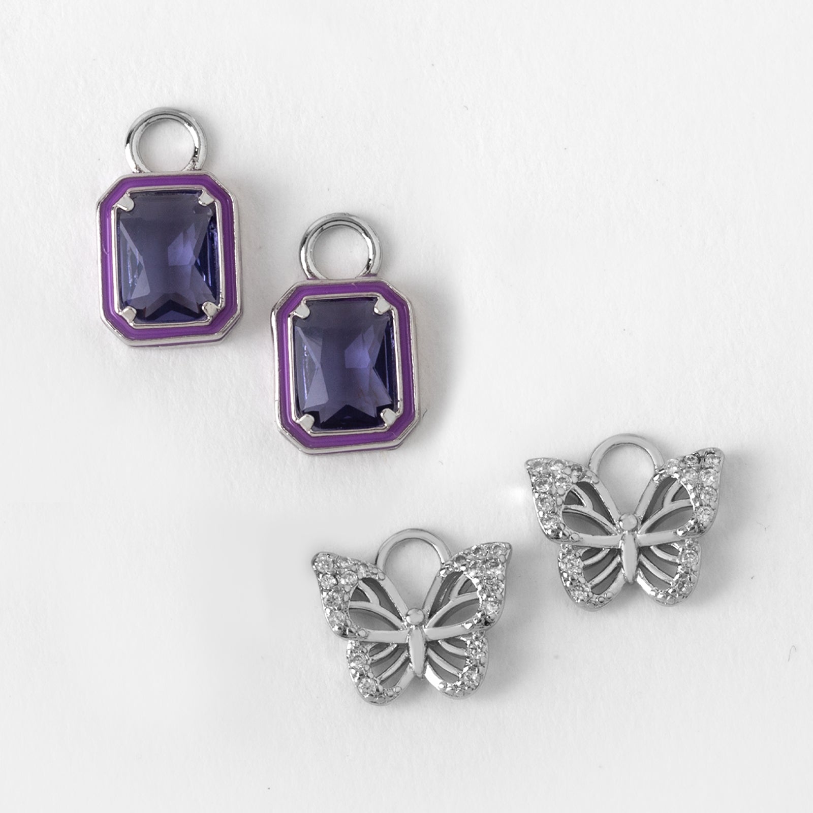 Pendants can create one powerful story. Our Butterfly in Bloom includes a dazzling pavé butterfly charm and a radiant purple baguette pendant - both in a silver-tone finish. Wear them together or mix and match with earrings, charm bracelets, or charm necklaces. Each charm pendant symbolizes growth, transformation, and the beauty of becoming.