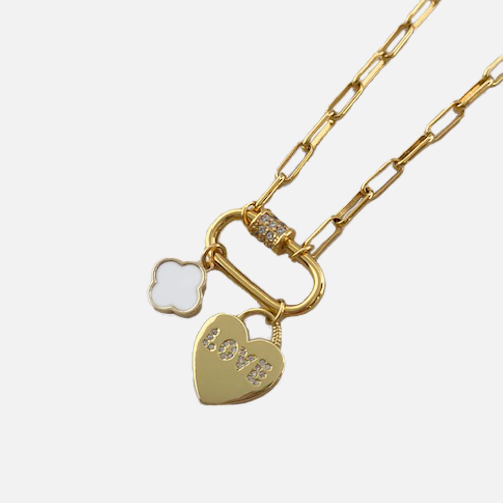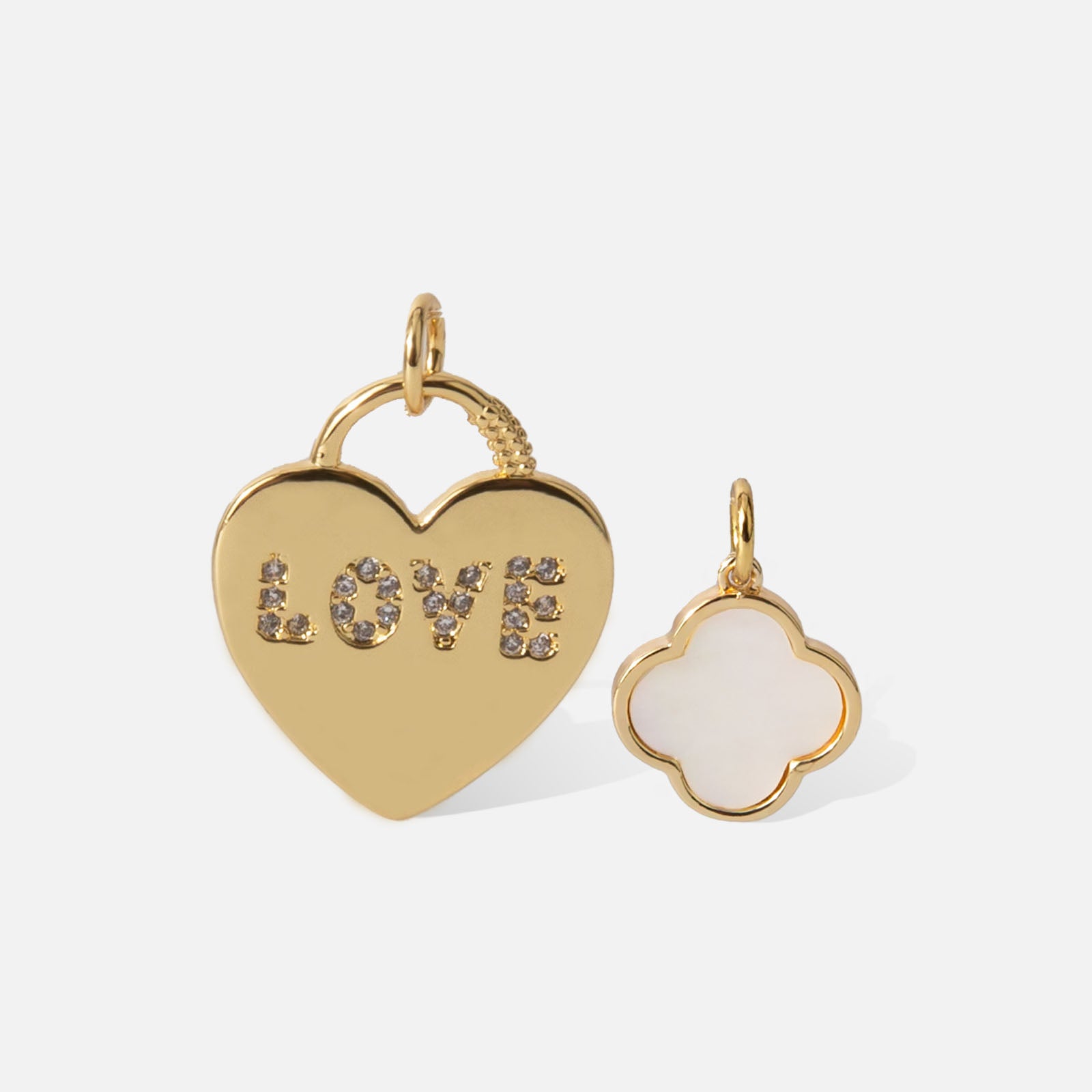 This gold pendant set includes a heart-shaped lock and a matching key charm, symbolizing love kept safe. The polished design makes it easy to wear for everyday or special moments. It’s a romantic choice for yourself or as a gift. Style this heart lock and key charm pendant set on your charm necklace or charm bracelet when you want to wear a symbol of love.