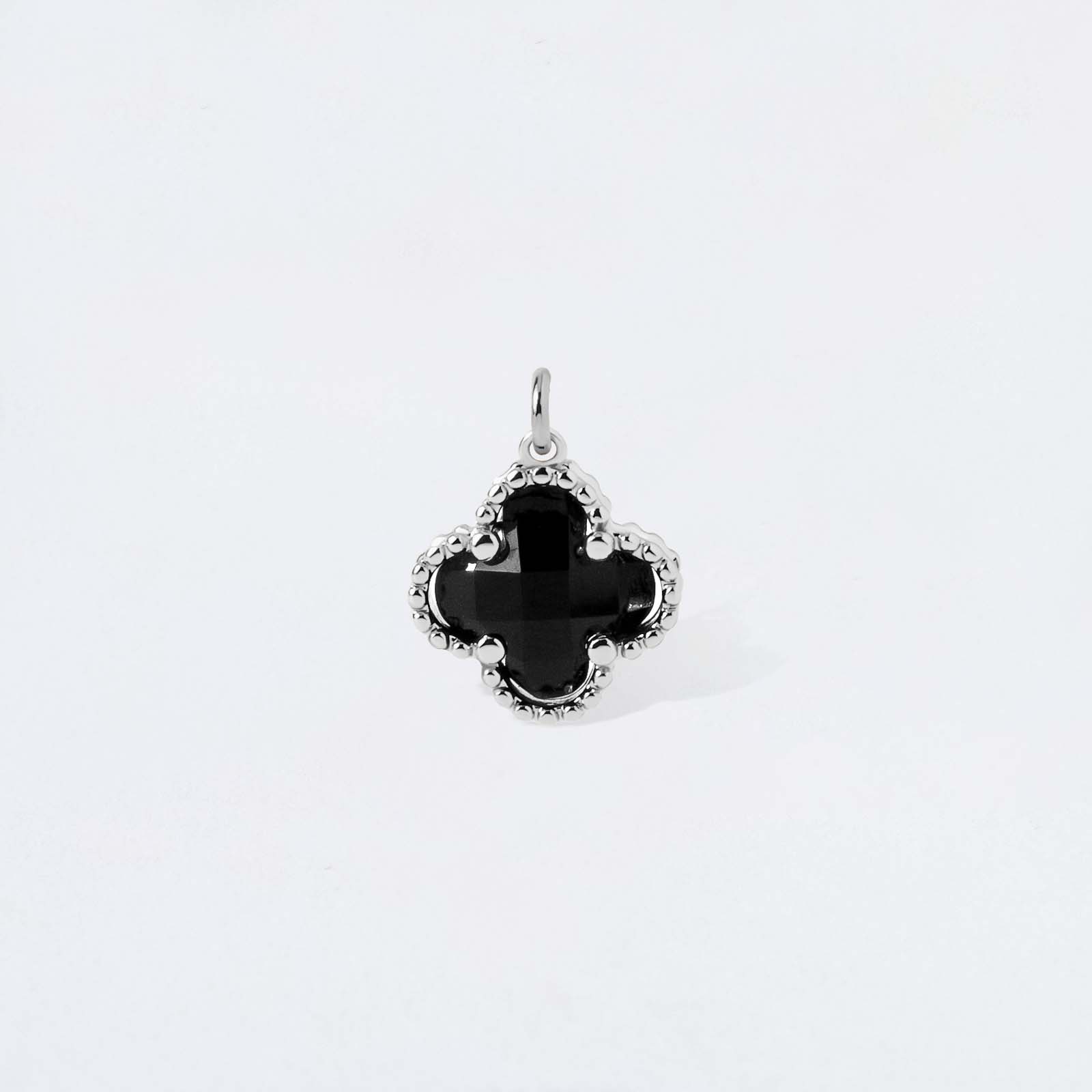 Crafted in sleek silver with a black center, this clover charm pendant adds a touch of sophistication to your charm necklace or charm bracelet! Add this lucky charm pendant to your favorite chain to bring a subtle statement to your daily style.