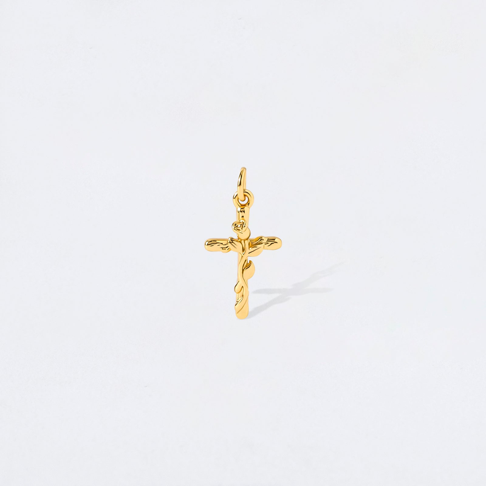 A blend of beauty and faith, the Rose Vine Cross Charm Pendant features intricate floral accents.