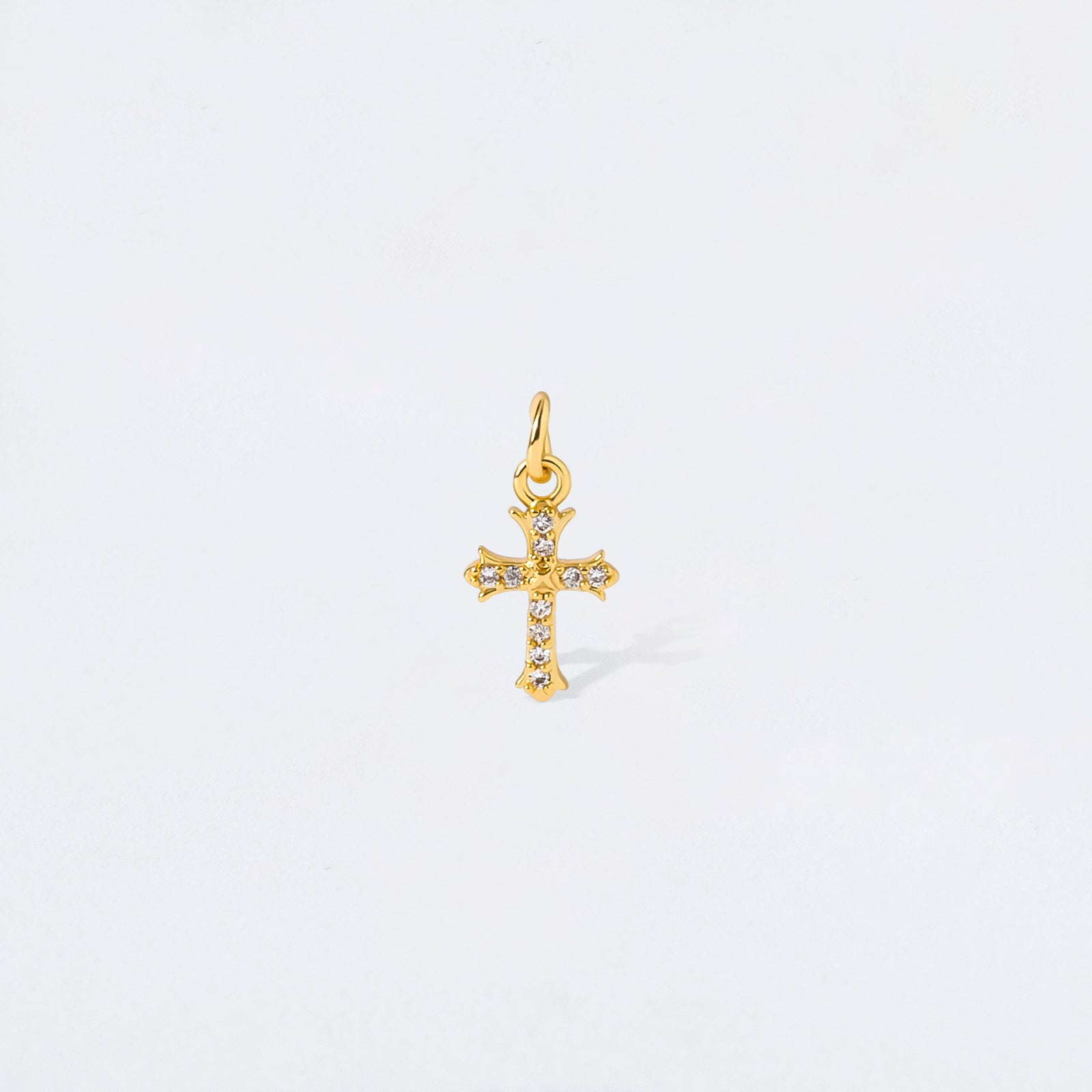 Small Gold Antique Cross Charm Pendant with Pave Crystals