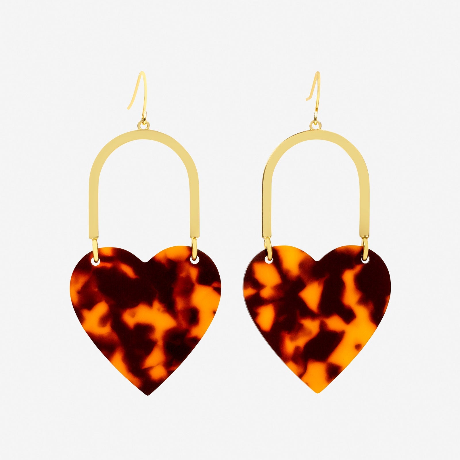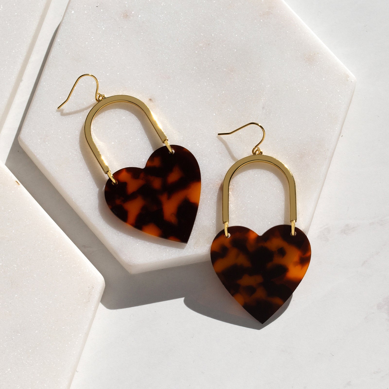 These on-trend Gold and Tortoise Heart Drop Earrings belong in your jewelry collection. They’re the perfect complement to your stylish wardrobe!