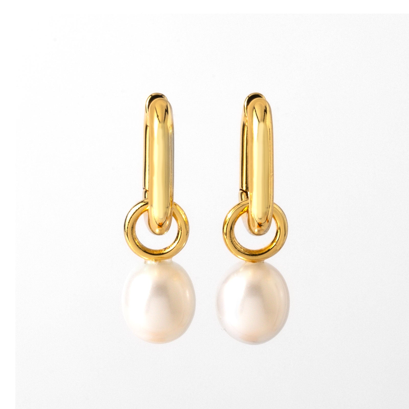 One pair, 2 styles, endless charm. The Pearl & Glaze Earring Set includes classic gold hoops and two interchangeable drop pendants—one with luminous freshwater pearls, and the other with painted blue porcelain-inspired beads. Swap them to suit your mood, your outfit, or the moment! From timeless elegance to playful polish, wear these earrings 2 different ways and let your style do the talking.