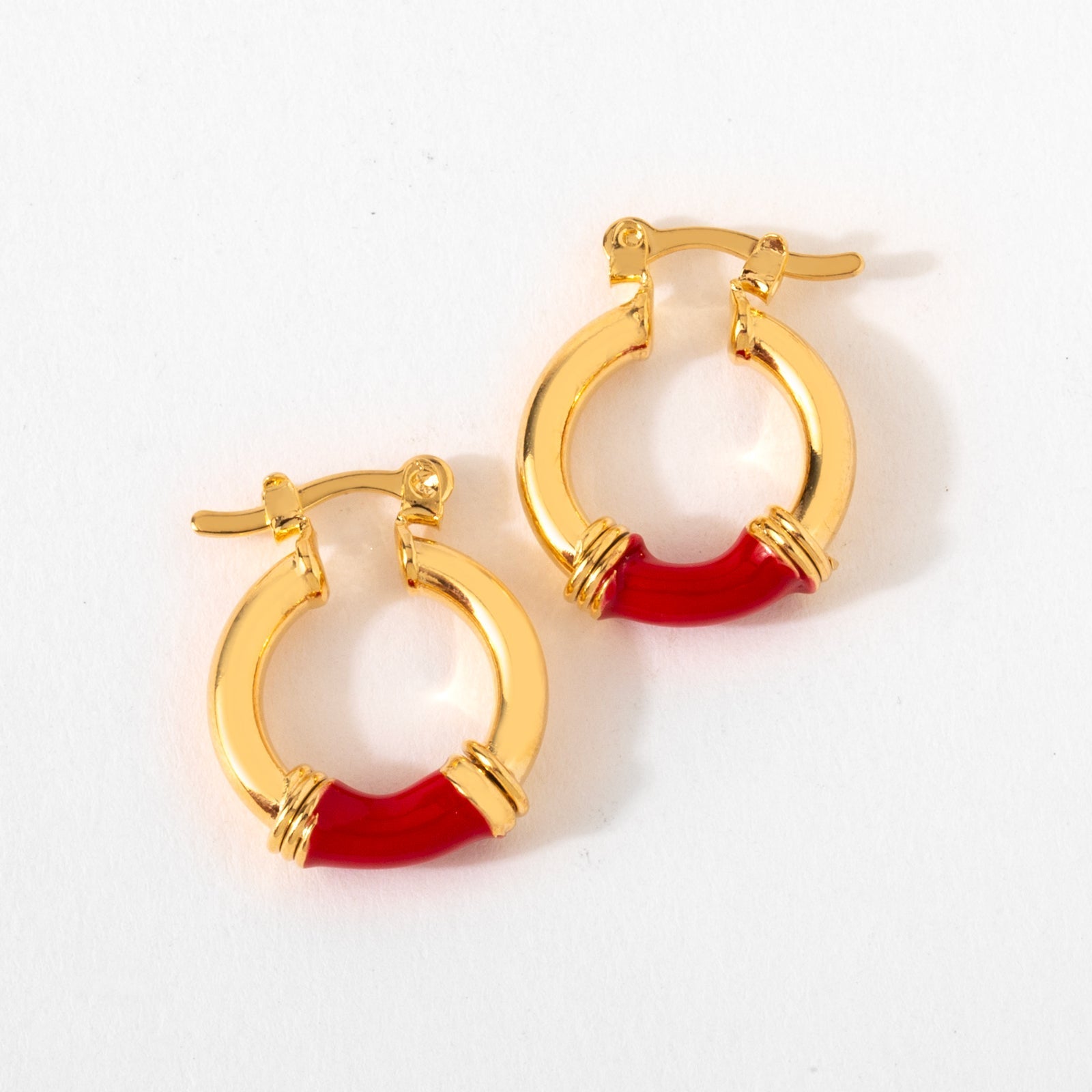 Add a bold pop of color to your look with our Red Enamel Hoop Earrings! These chic earrings feature a vibrant red finish, perfect for making a statement. Whether you’re dressing up for a night out or adding a fun touch to your everyday style, these hoops are a must-have. Let your confidence shine with this striking accessory.