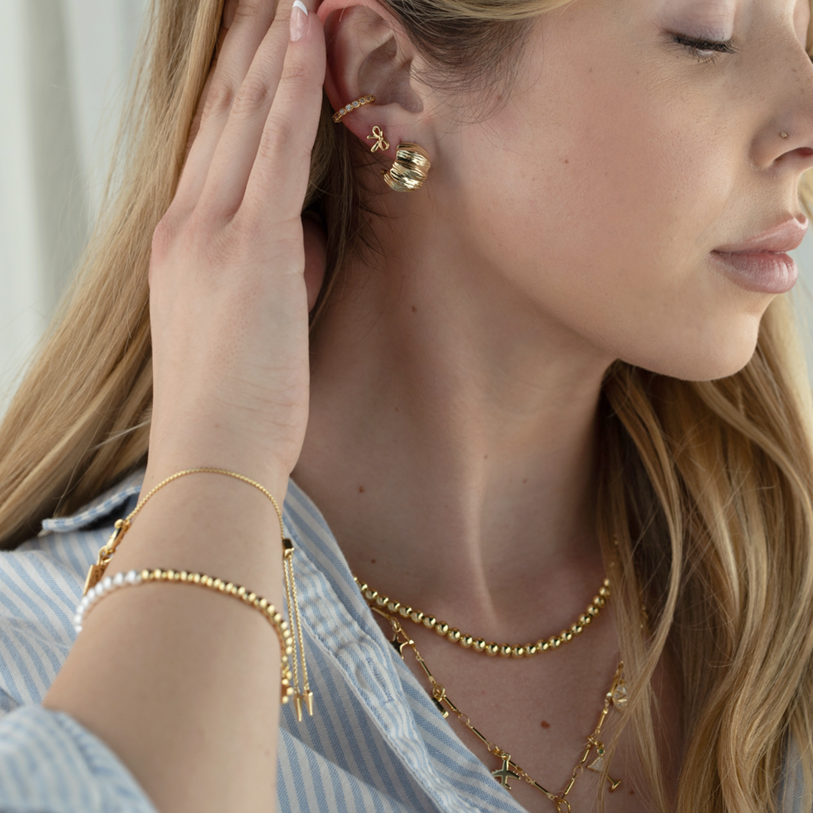Our Croissant Hoops, available in both radiant gold and sleek silver, are sculpted perfection—designed with the same irresistible, layered texture as a fresh-baked croissant glistening in a Parisian storefront window. Warm, dimensional, and effortlessly chic, they’re lightweight enough for everyday wear yet bold enough to elevate any outfit. Slip them on for a touch of French-inspired allure that turns even the simplest look into something unforgettable.