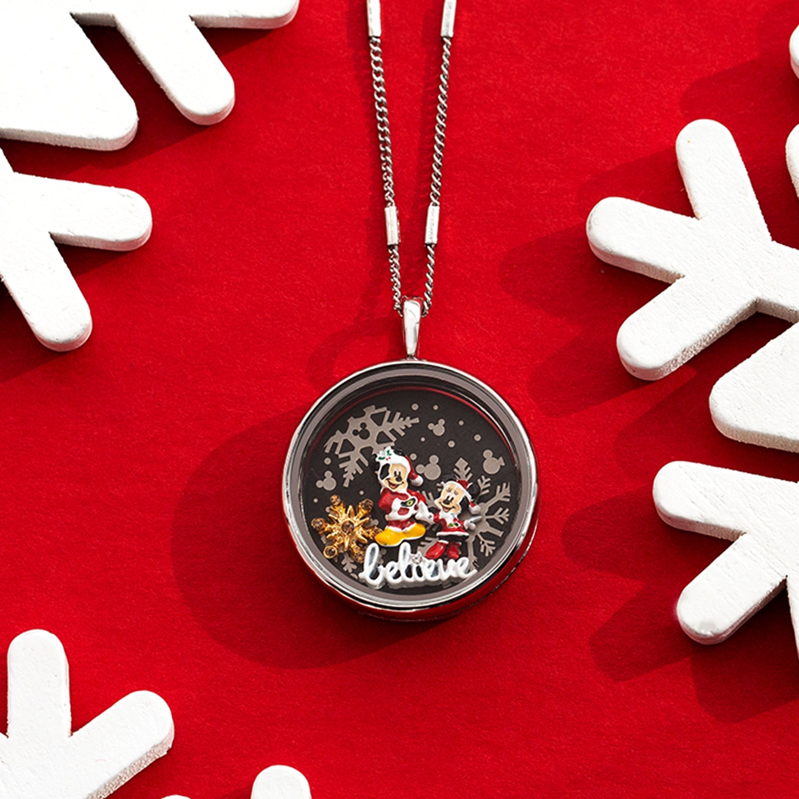 Celebrate the season with frosty Disney flair! Let it snow in your Living Locket® with our Disney Snowflake Mickey Plate. Featuring delicate snowflakes and hidden Mickey details, this locket plate creates a wintry wonderland for your favorite holiday floating charms.