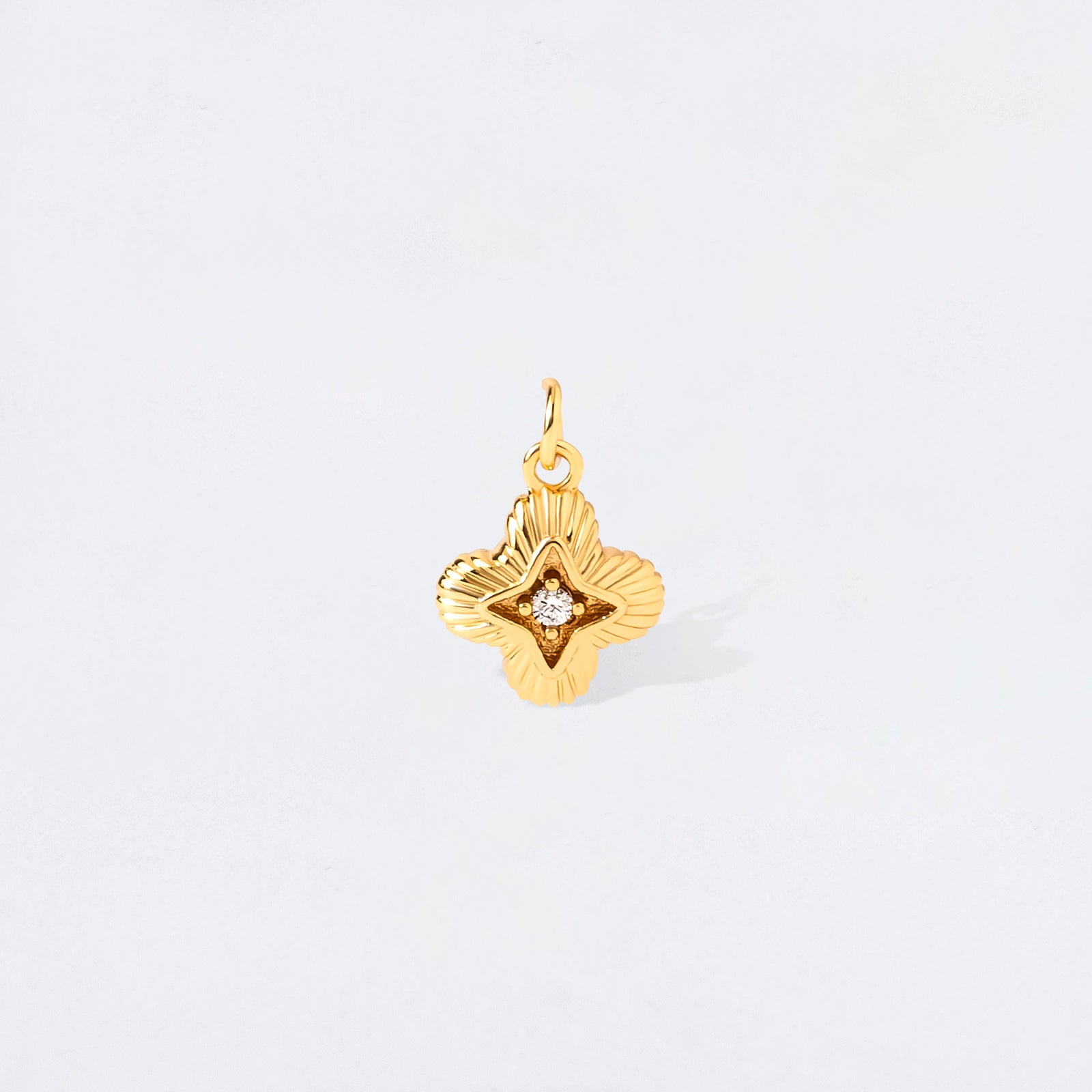 The Radial Clover + Crystal Pendant combines intricate clover designs with a sparkling crystal accent, adding dimension and shine to your charm collection.