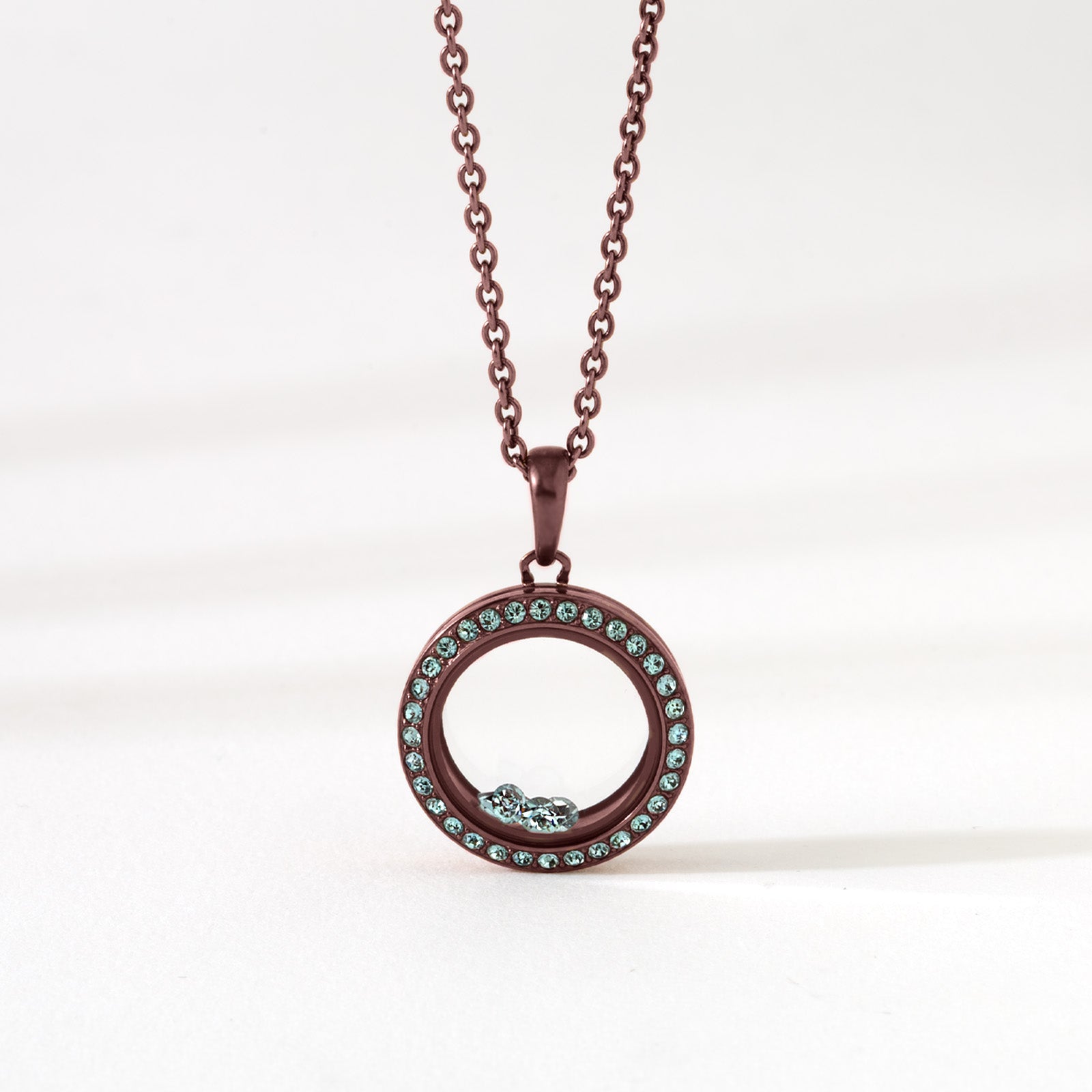 The Smoky Ember Locket Necklace brings warmth and depth to your fall jewelry stack. This 18–20" petite locket features a smoked sapphire crystal face and warm-toned frame. Add 1-2 of your favorite floating charms and make this locket the perfect piece to tell your autumn story.