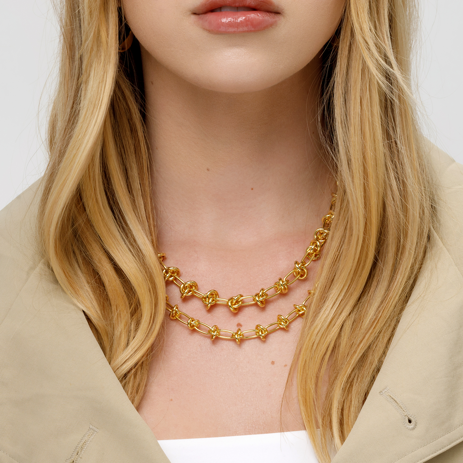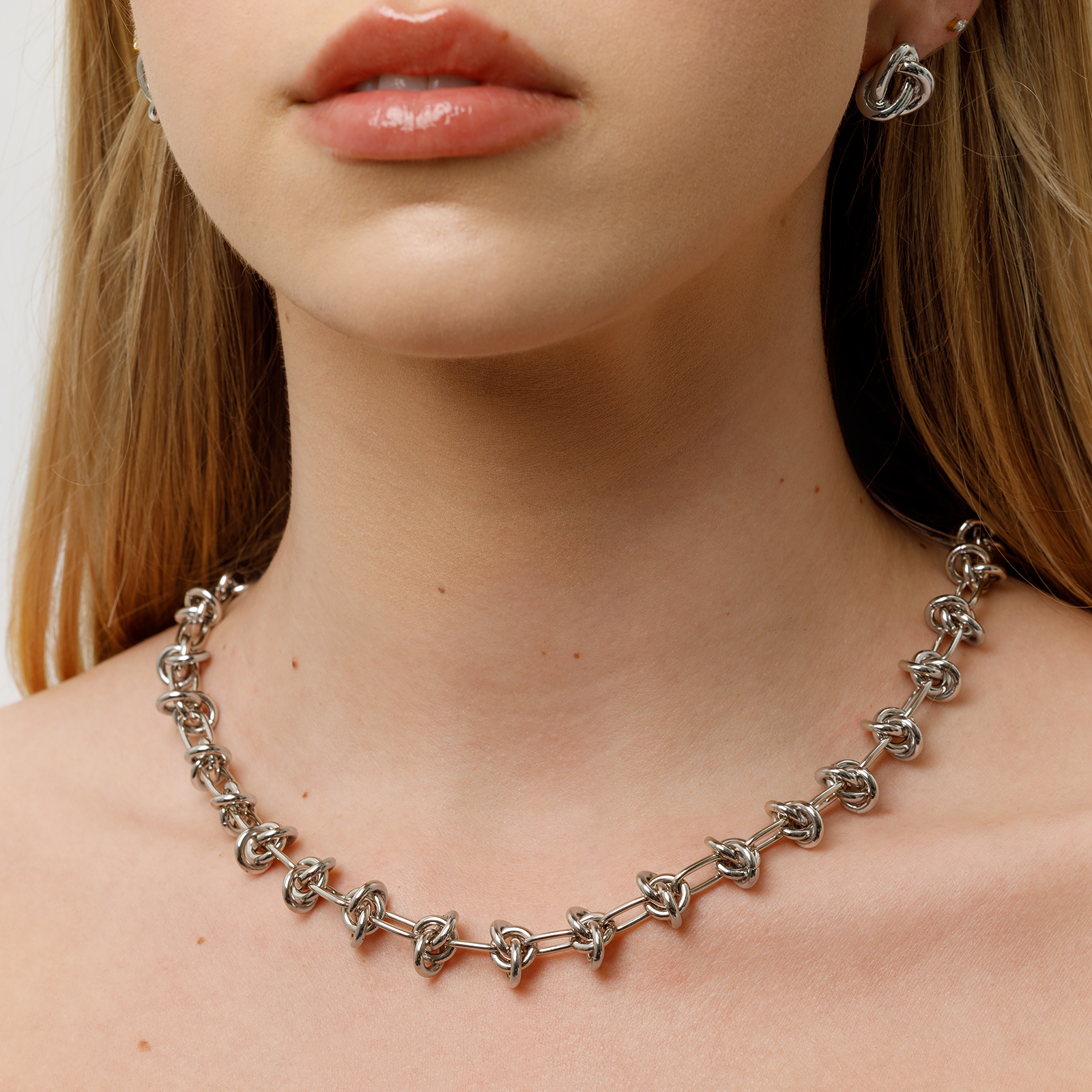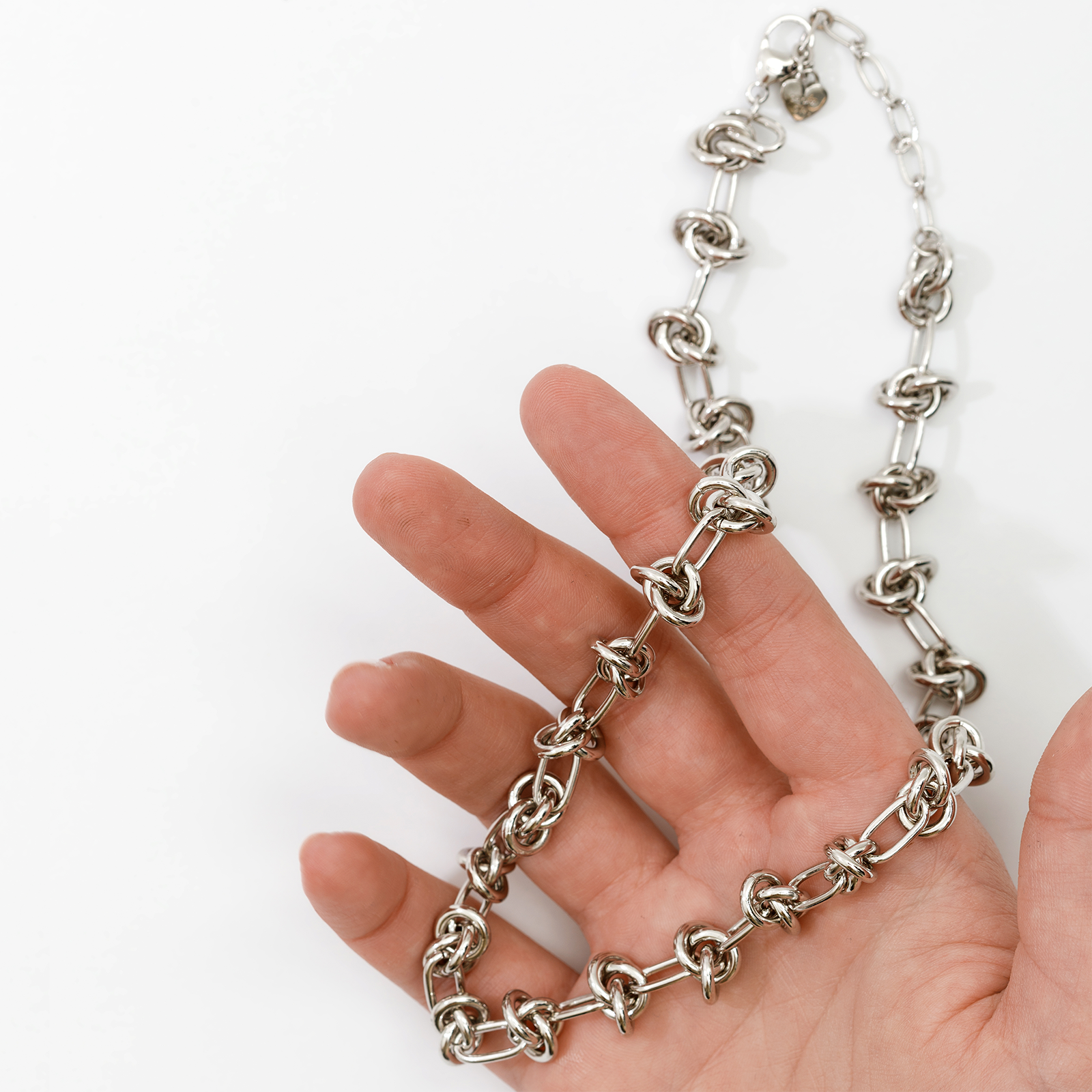 Make a statement with the Bold Knot Chain Necklace — a striking piece designed to symbolize connection, strength, and timeless style. Featuring a sculptural knot detail and a bold chain silhouette, this necklace brings effortless sophistication to any look. Wear this 18-20" necklace on its own as a standout statement or layer it with your favorite pieces for a modern, elevated stack. Available in radiant gold or sleek silver, it’s a versatile piece that ties every look together beautifully.