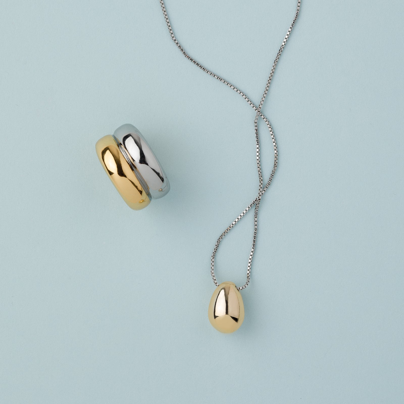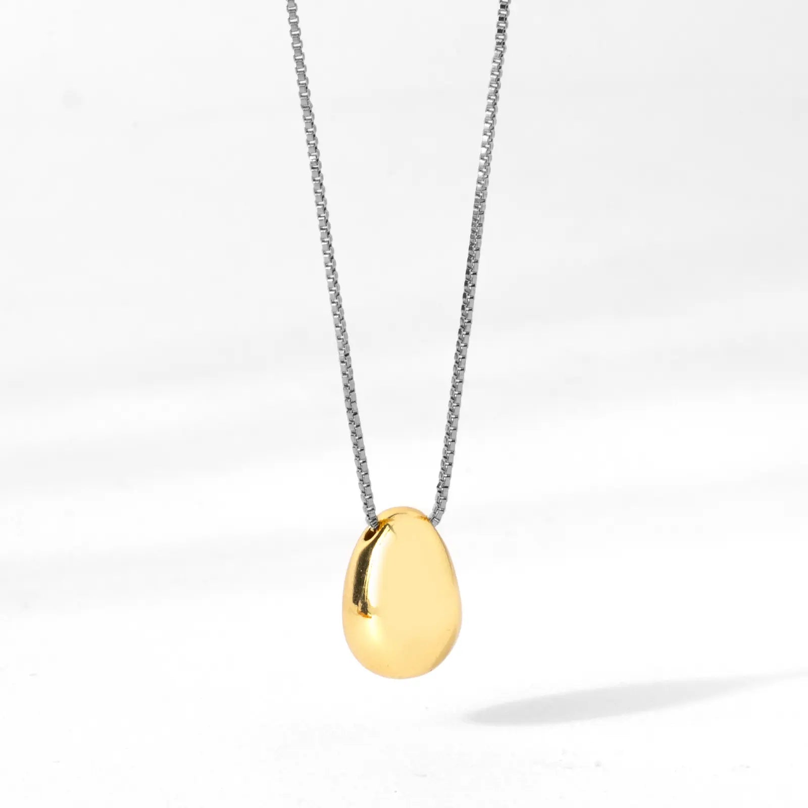 The two tone drop Necklace is designed with intention and simplicity in mind. Featuring a smooth, polished gold drop pendant on a sleek silver chain, this 18–20" mixed metal necklace brings a grounded elegance to any outfit. The contrast of metals makes it easy to layer or wear solo for a clean, sculptural statement. This two-tone necklace is a versatile piece that brings just the right balance to your jewelry collection!