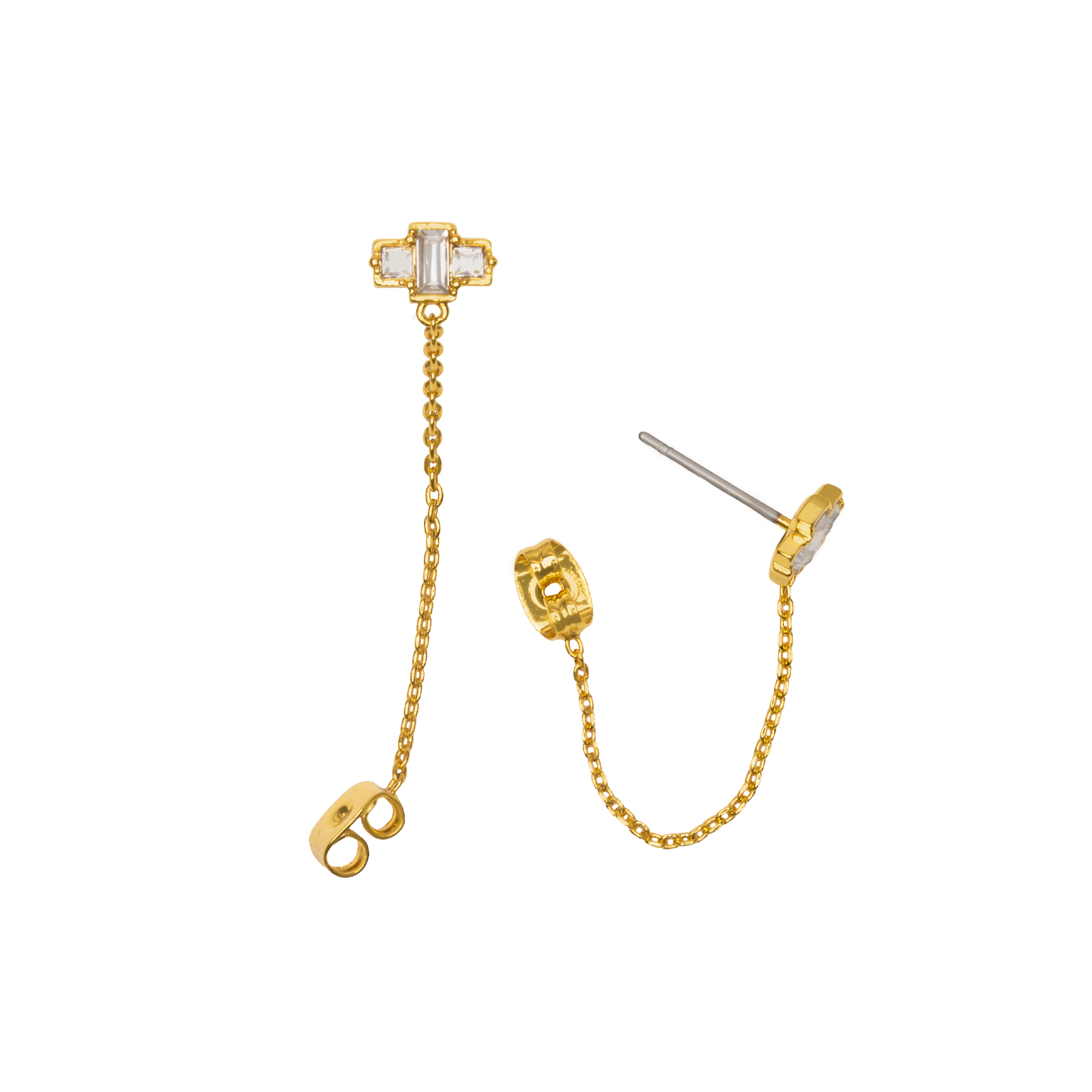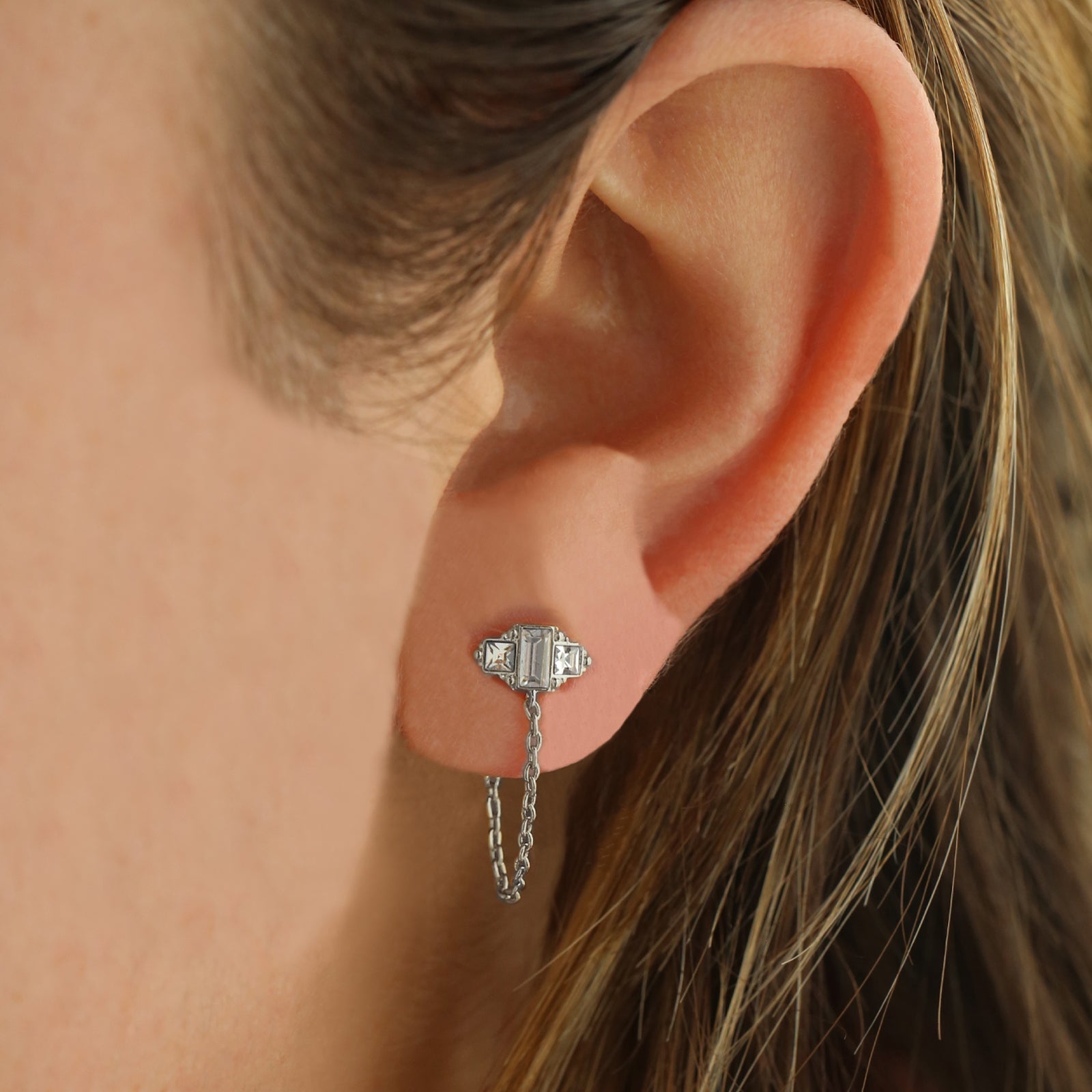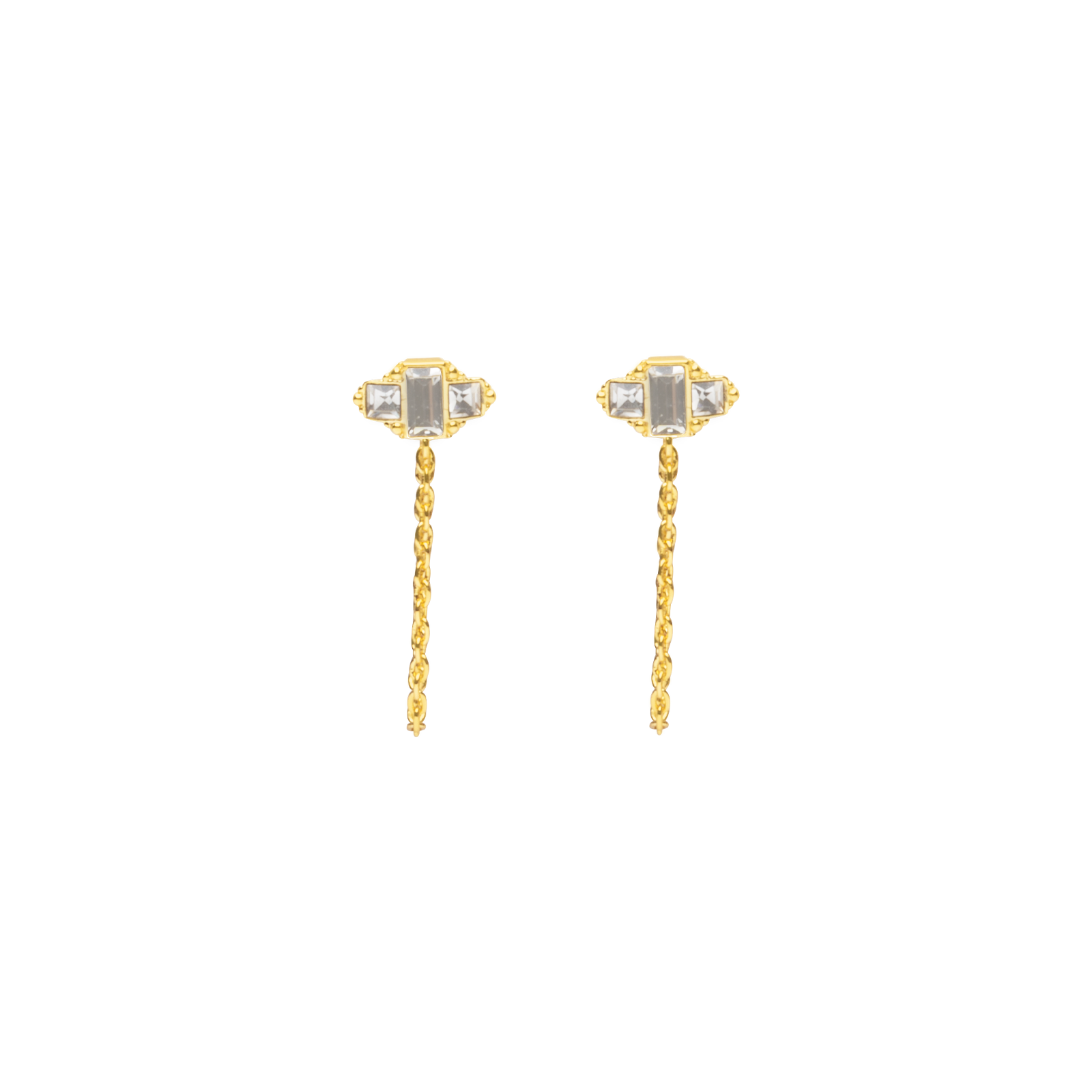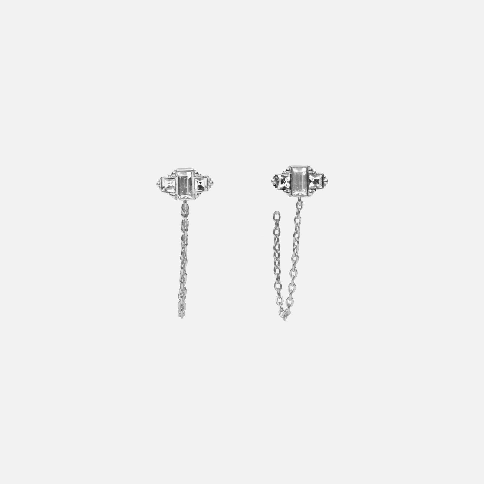 Dainty Baguette Stud and Chain Earrings
