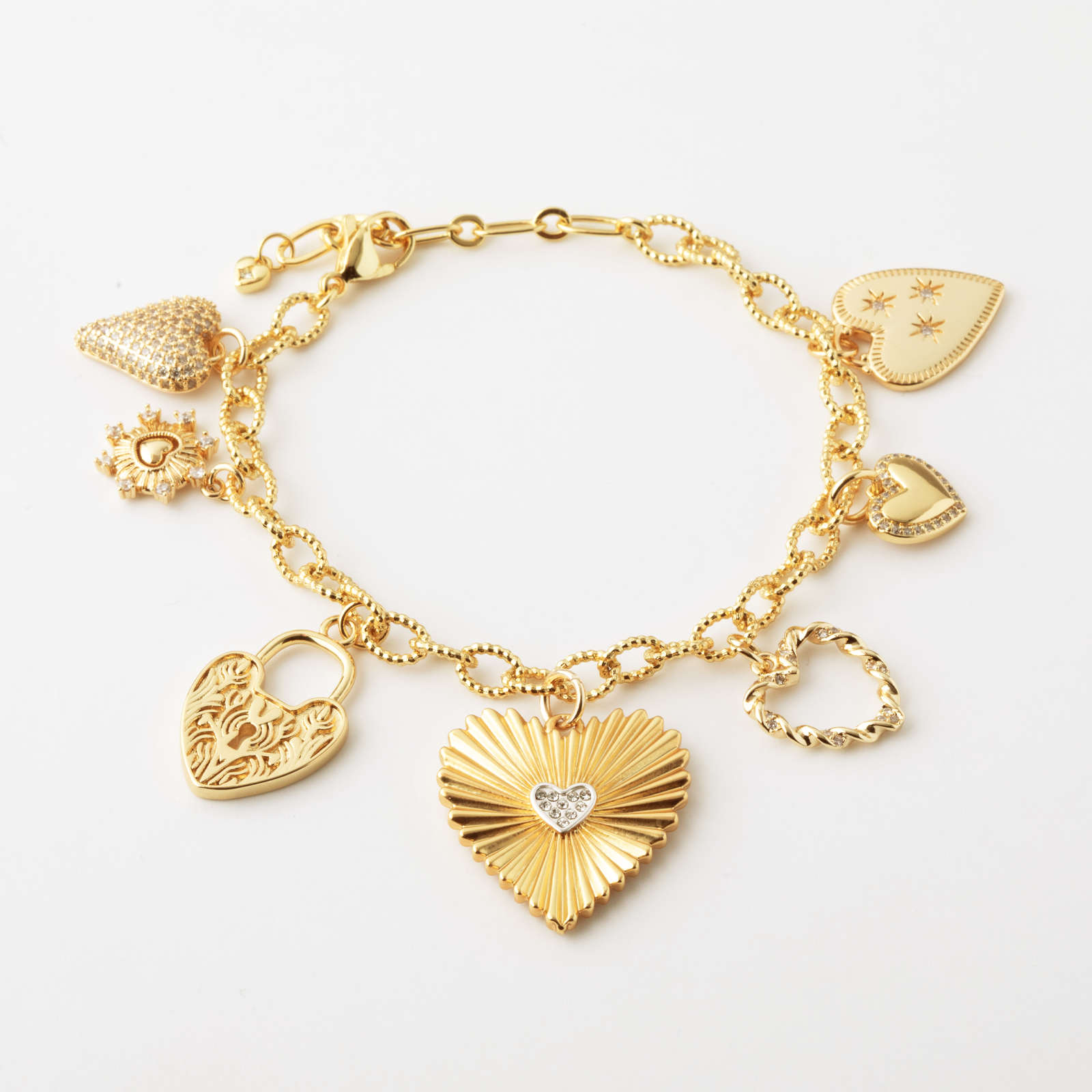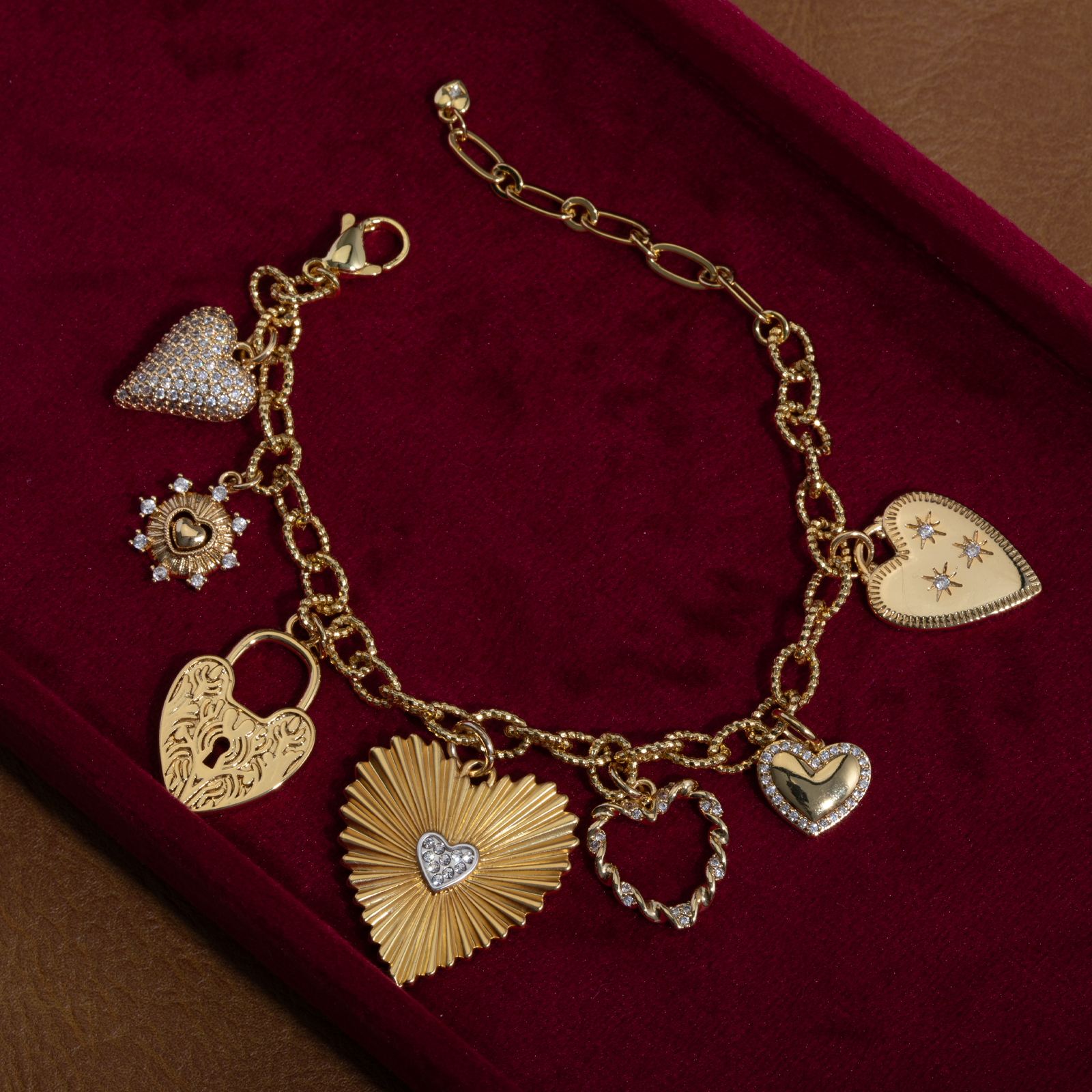 Our Bound by Love Charm Bracelet is is perfect for the romantic who believes in love that lasts forever. Featuring a chunky gold chain with heart charm, this charm bracelet reflects the layered beauty of deep connection. From pavé sparkle to vintage-inspired lockets, this gold charm bracelet represents the moments, memories, and meaning we carry with us.