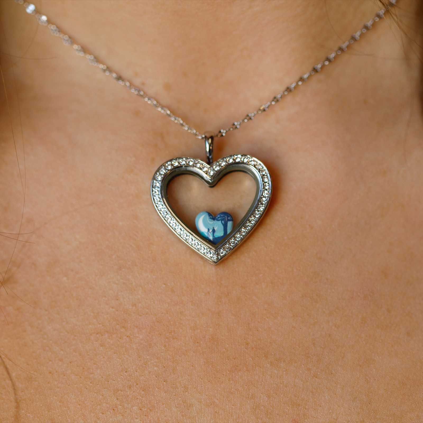 Our Romantic Scenes Heart Charm captures the essence of your favorite moments in loves storybook. With intricate imagery etched into its heart shape, this double-sided floating charm invites you to recall first glances, treasured whispers, and the chapters written between two souls. Add this charm to your Living Locket® jewelry when you want to carry a memory that speaks louder than words.