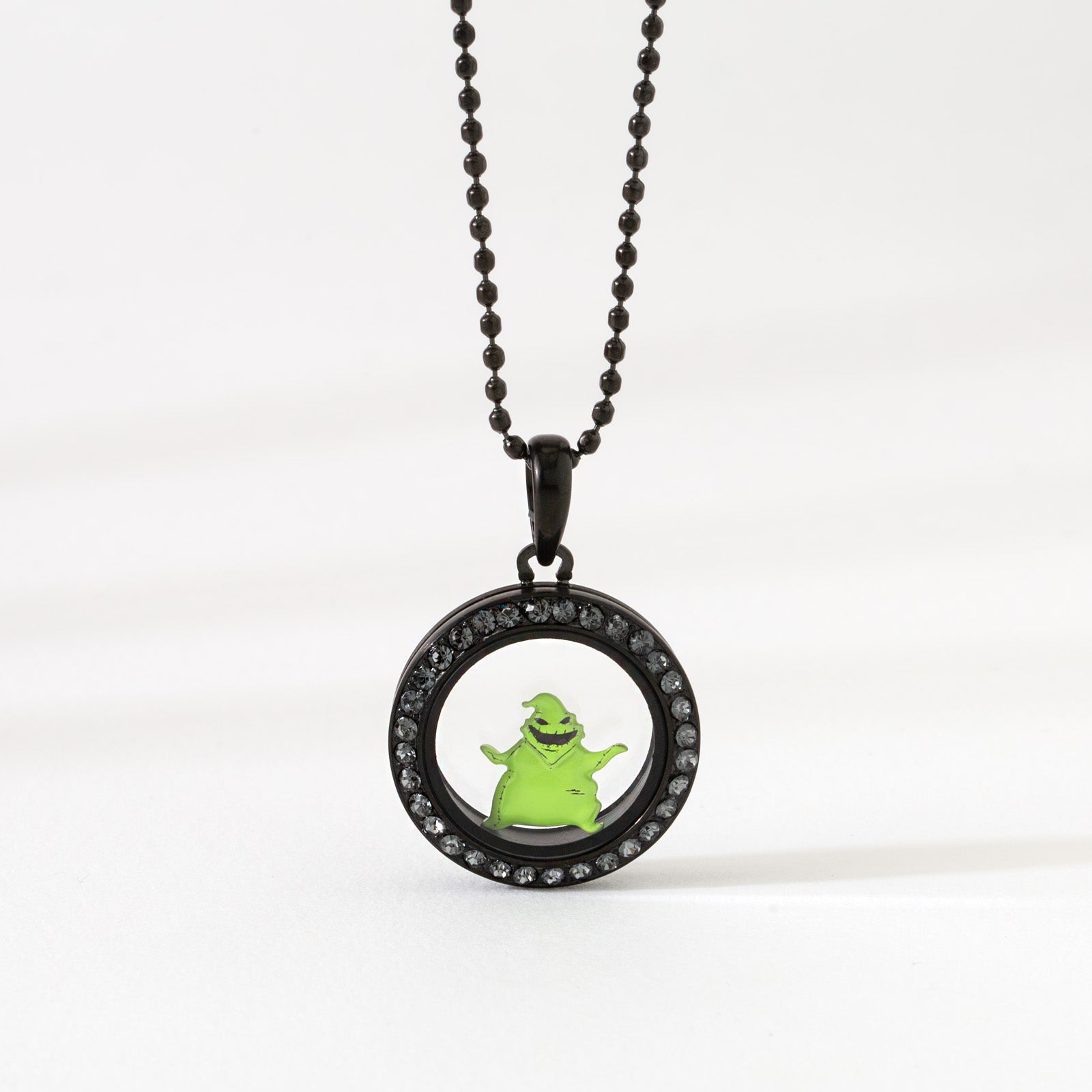 Add a little Halloween Town magic to your outfit with the Disney Oogie Boogie Locket! Inspired by Disney’s The Nightmare Before Christmas film, this locket is a fun and easy way to show off your spooky side. This petite 18–20" locket necklace features a sleek black locket filled with a mini green Oogie Boogie charm, surrounded by dark crystal accents. Our Disney Oogie Boogie Locket is the ultimate pick for fans who want to add Nightmare Before Christmas jewelry to their everyday look!