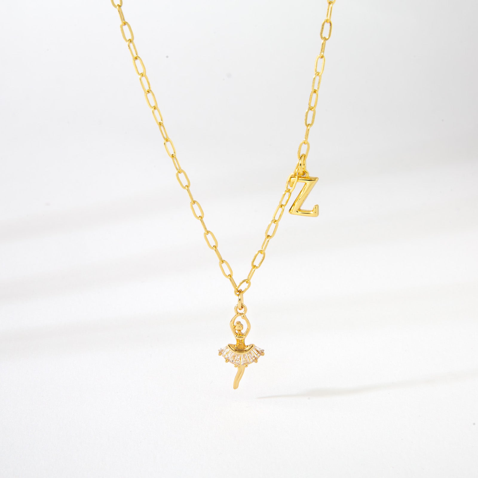 Dance through your day with the En Pointe Ballet Necklace! Create your new favorite dance jewelry and take your passion for music with you wherever you are! Personalize this 17-19" ballet pendant necklace with the initial that represents you or your favorite dancers Whether you’re cheering from the stands or celebrating a big recital, this personalized dance charm necklace is a stylish way to keep your team spirit alive.