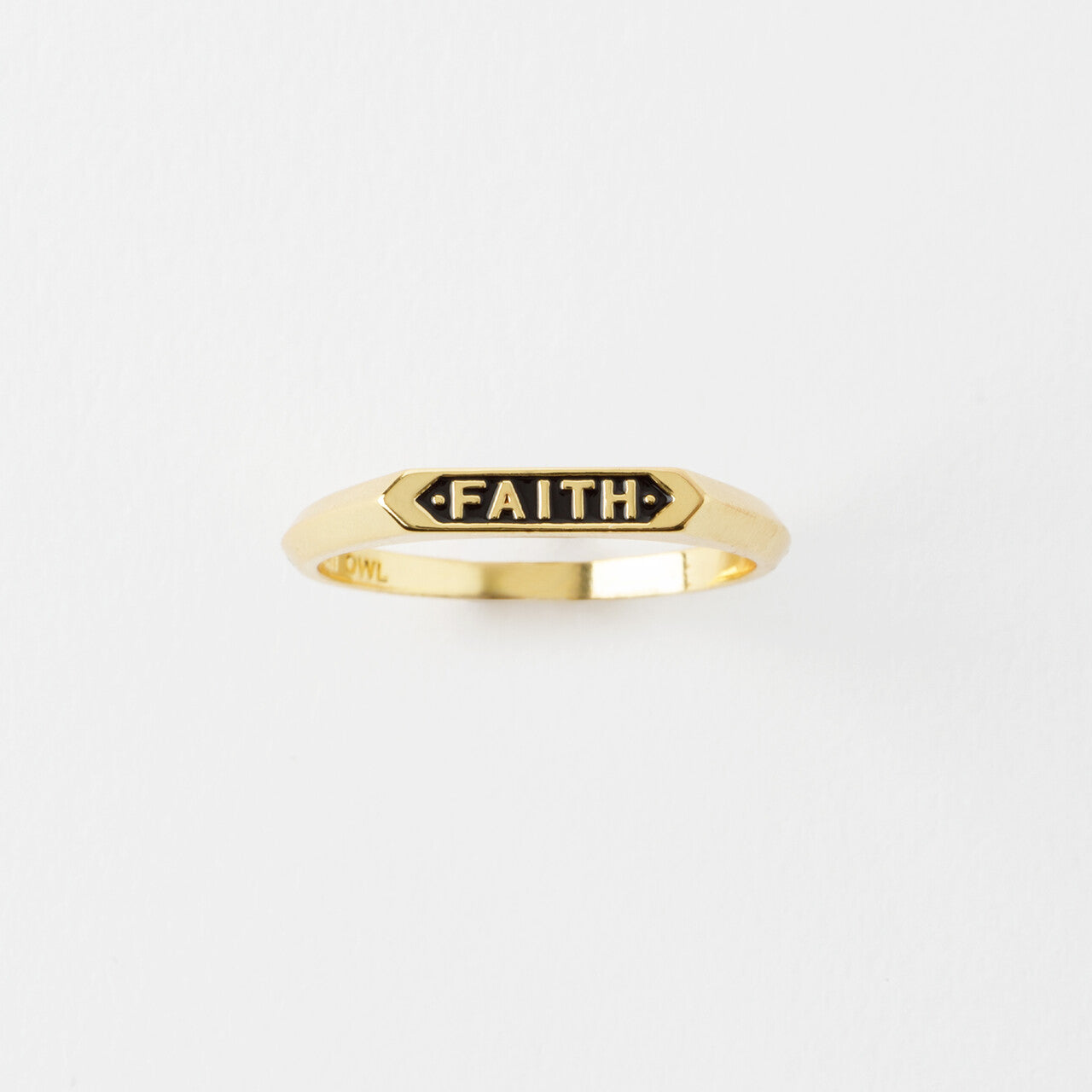 It's more than a ring, t's a reflection of what anchors you. Our Faith Signet Ring is a simple yet powerful piece designed for everyday wear. Grounded in purpose and etched with a meaningful message, this inspirational ring serves as a quiet reminder to walk in faith and lead with strength. With its clean lines and timeless shape, this piece stands beautifully on its own or adds depth when stacked with your favorites.