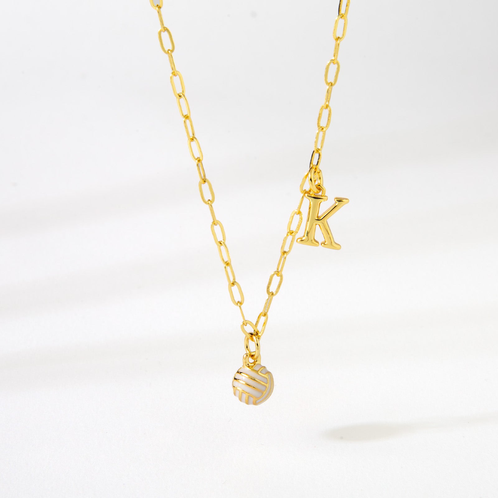 Serve up style with the Game Point Volleyball Necklace! Create your new favorite Game Day jewelry and take your team pride with you wherever you are! Personalize this 17-19" volleyball pendant necklace with the initial that represents your team, your favorite player, or for someone special for you. Whether you’re cheering from the stands or celebrating a big win, this personalized sports fan charm necklace is a stylish way to keep your team spirit alive.