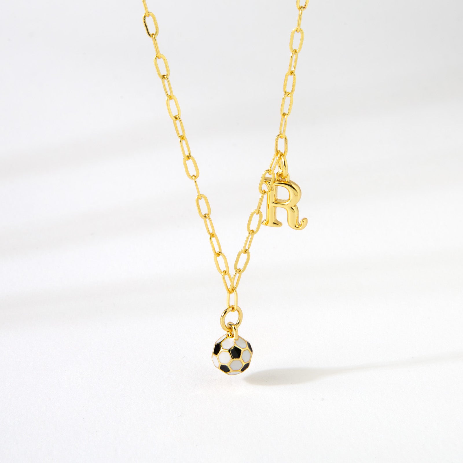 Chase your goals in style with the Goal Getter Soccer Necklace! Create your new favorite Game Day jewelry and take your team pride with you wherever you are! Personalize this 17-19" soccer necklace with the initial that represents your team, your favorite player, or for someone special for you. Whether you’re cheering from the stands or celebrating a big win, this personalized sports fan charm necklace is a stylish way to keep your team spirit alive.
