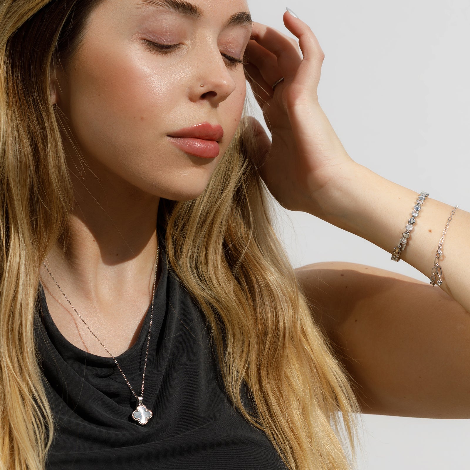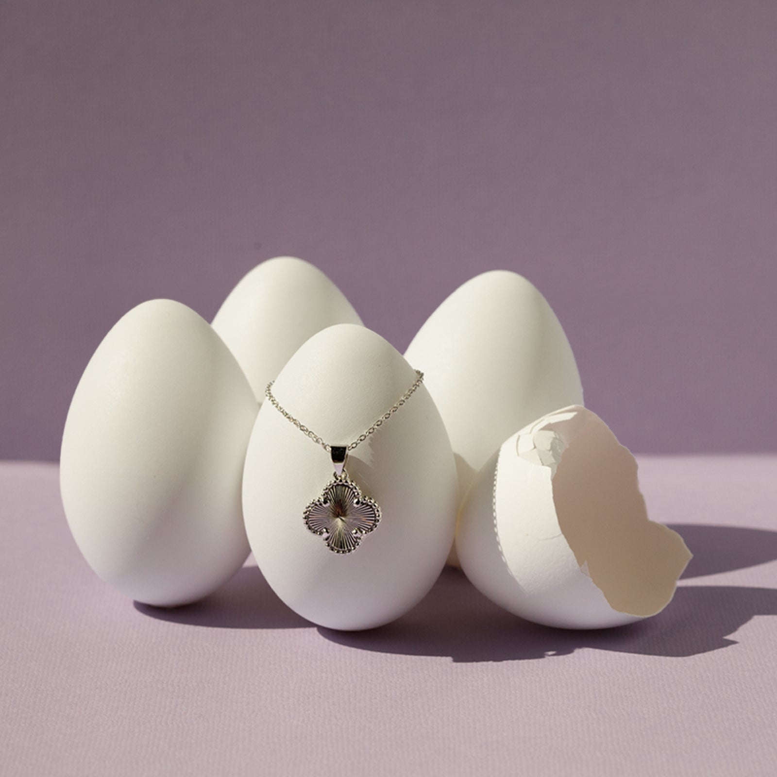 Our Grace Clover Pendant captures the quiet magic of the four-leaf clover — a timeless emblem of hope, faith, love, and luck. Designed with a radiant, dimensional silhouette, each polished petal reflects light with every movement, creating a subtle shimmer that feels both effortless and refined. Whether you wear it as a reminder of the blessings you carry or the dreams still unfolding, this piece is made to move with your story.