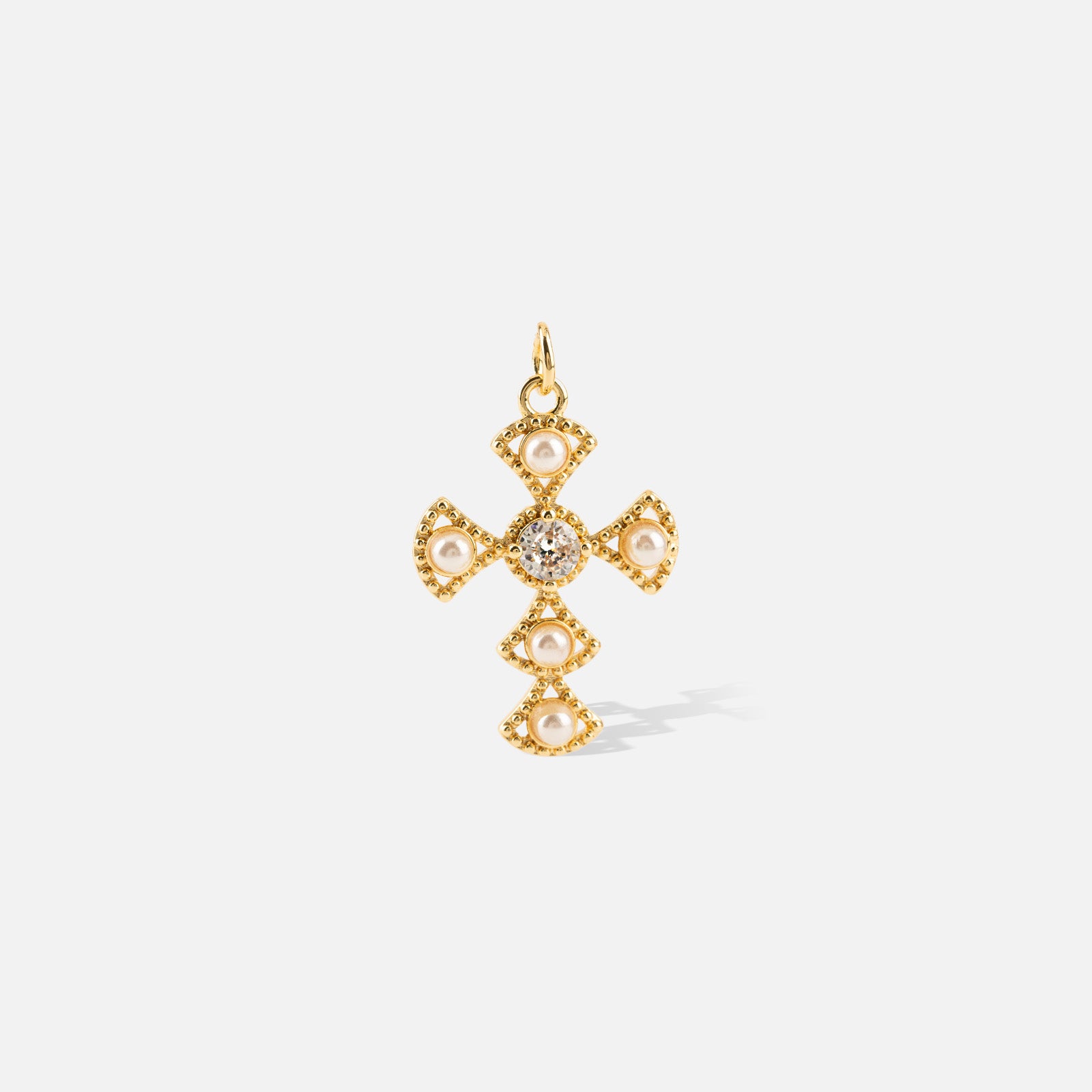The Halo Pearl Cross Charm Pendant blends vintage charm with modern shimmer! With its pearl and crystal accents in a beautiful cross, this elegant piece adds a refined touch to your charm bracelet or charm necklace.