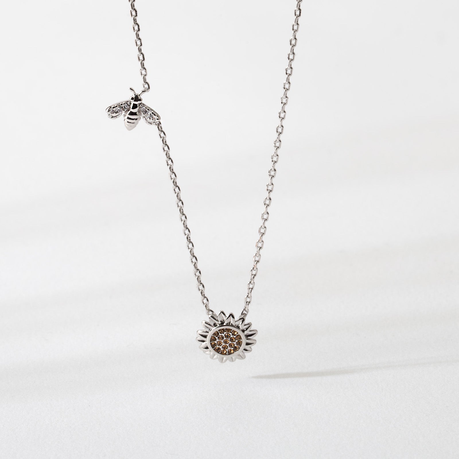 The Honeylink Necklace features a dainty bee and crystal sunflower pendant as a symbol of hard work, sweetness, and harmony. Ready for the season, this beautiful 18-20" fall jewelry piece is perfect for layering or wearing solo when you want to add a little buzz to your style!