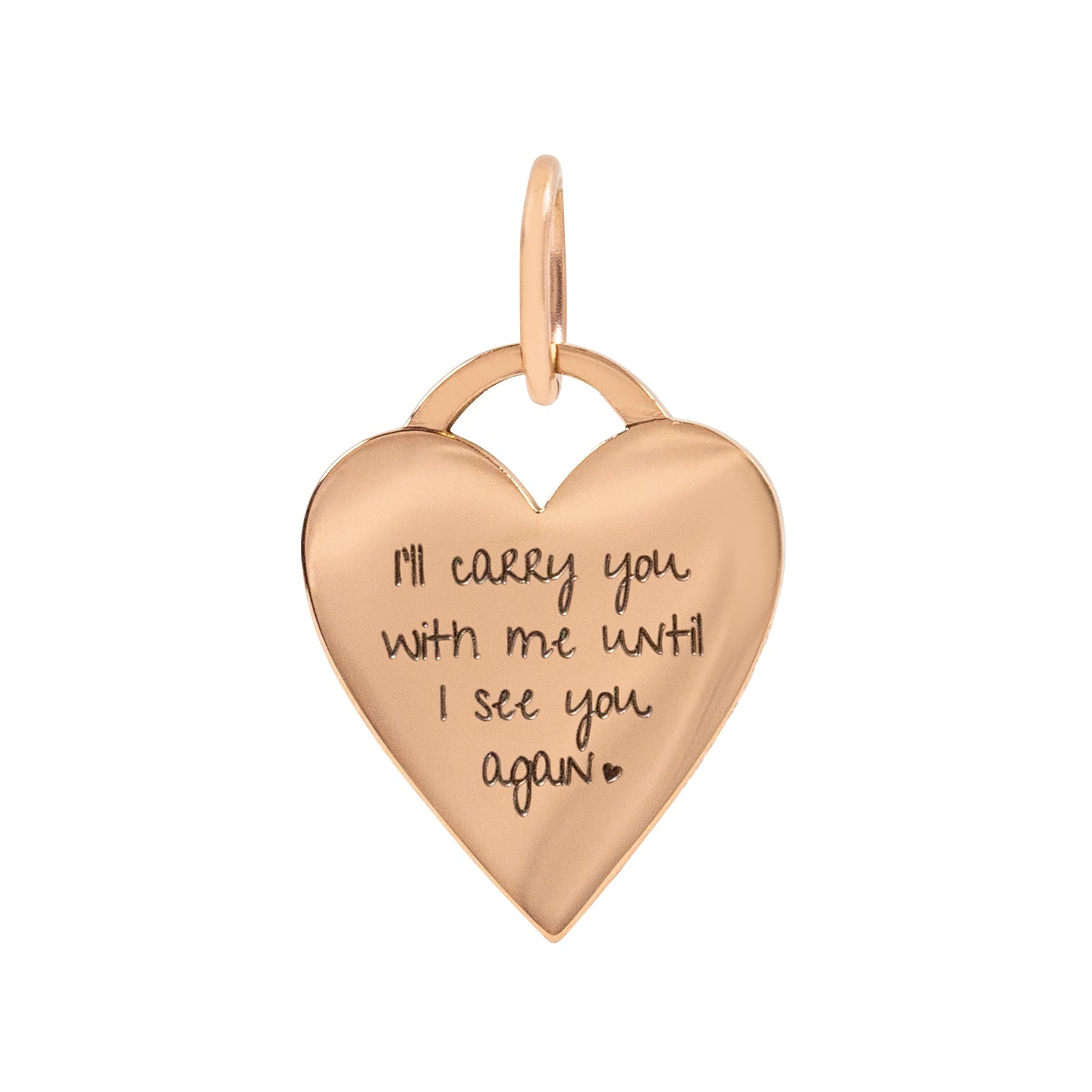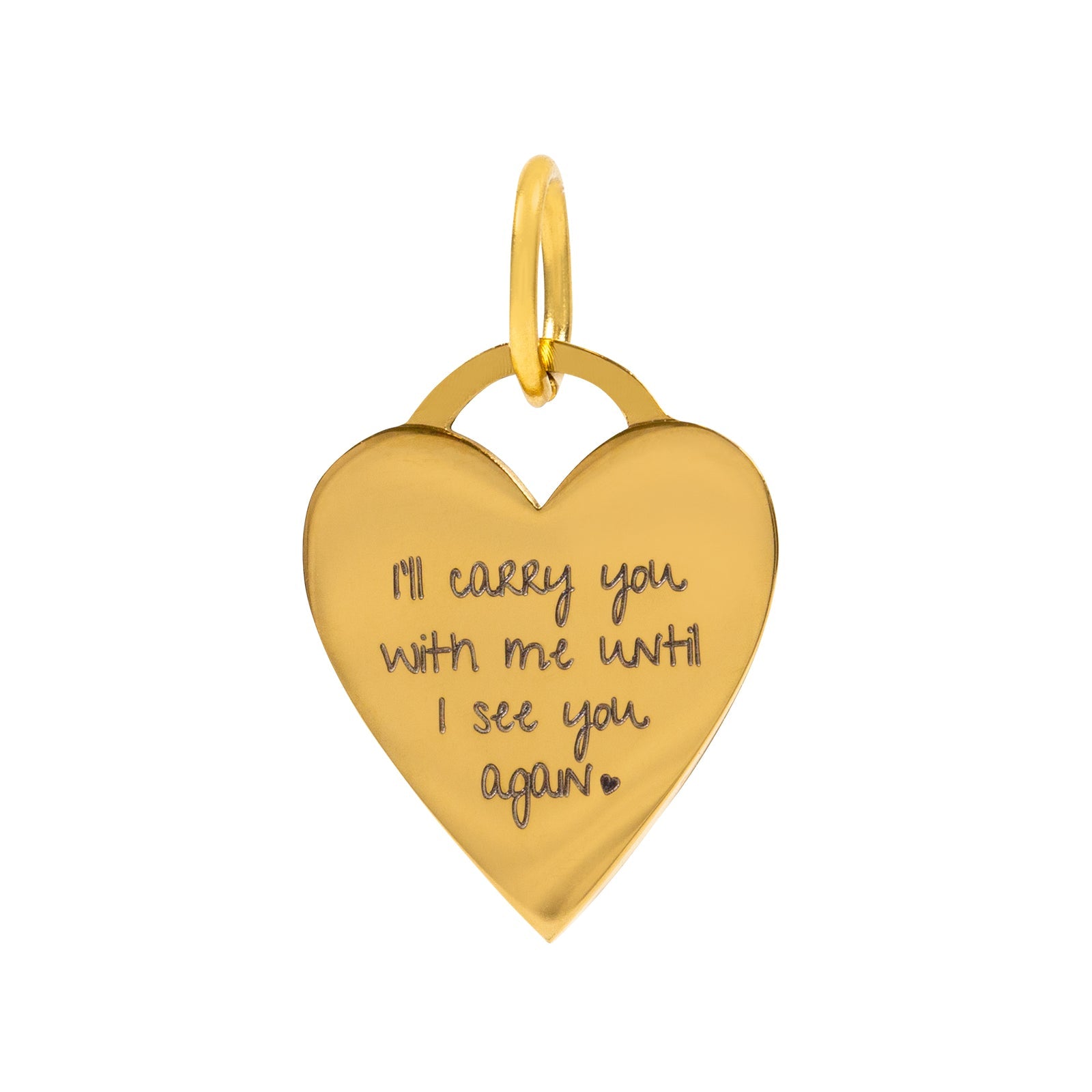 Carry your lost loved one(s) with you wherever you go with our “I’ll Carry You” Heart Pendant. This pendant is inscribed with “I’ll carry you with me until I see you again” as your reminder (and keepsake) that even though they’re gone, they’re forever in your heart.