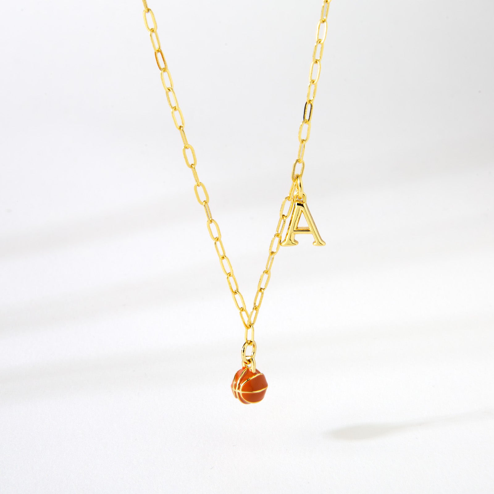 Score style points with the Net Play Basketball Necklace! Create your new favorite Game Day jewelry and take your team pride with you wherever you are! Personalize this 17-19" basketball necklace with the initial that represents your team, your favorite player, or for someone special for you. Whether you’re cheering from the stands or celebrating a big win, this personalized sports fan charm necklace is a stylish way to keep your team spirit alive.