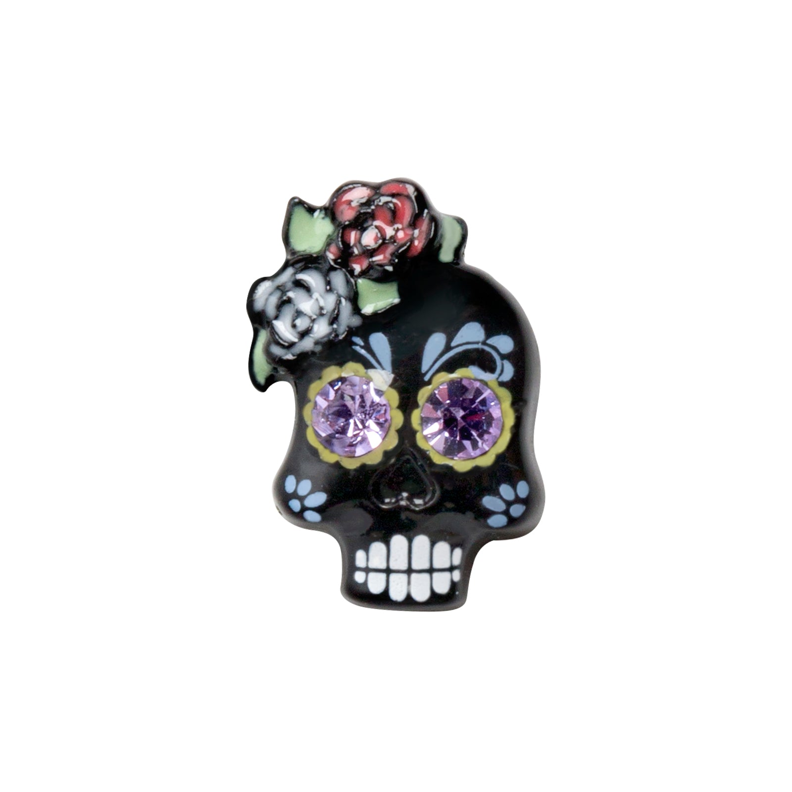 For collectors and admirers alike! Add our new Black + Pastel Sugar Skull Charm to your Living Locket! This third in a series Charm is a special one with the beautiful Lavender Crystals eyes and hand painted enamel details!